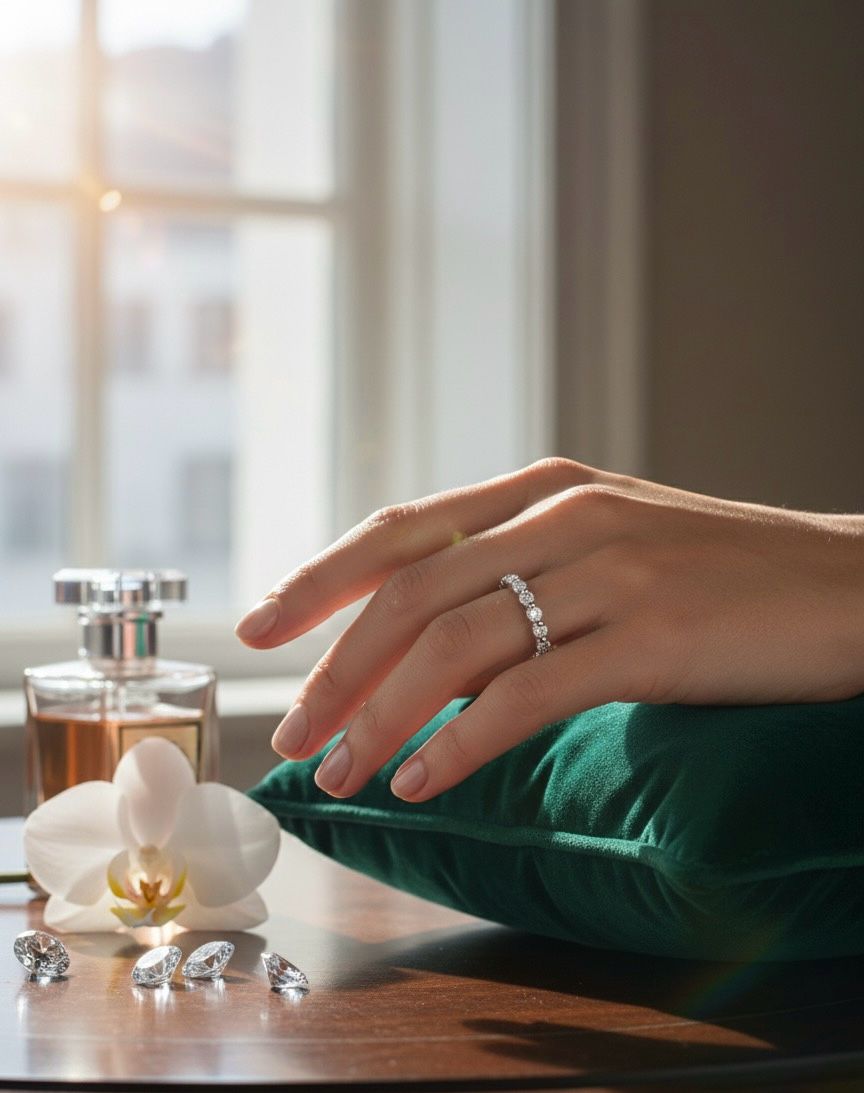 Unending Brilliance: A continuous stream of brilliant-cut diamonds ensures sparkle from every angle, symbolizing eternal love and commitment.